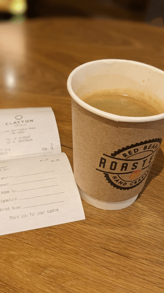 中級〜高級ホテルでは €120〜€150【約20,400〜25,500円】 に達することもある。 - 実際、クレイトンホテル宿泊時は 約 €170【約28,900円】(約3万円) 程度で、